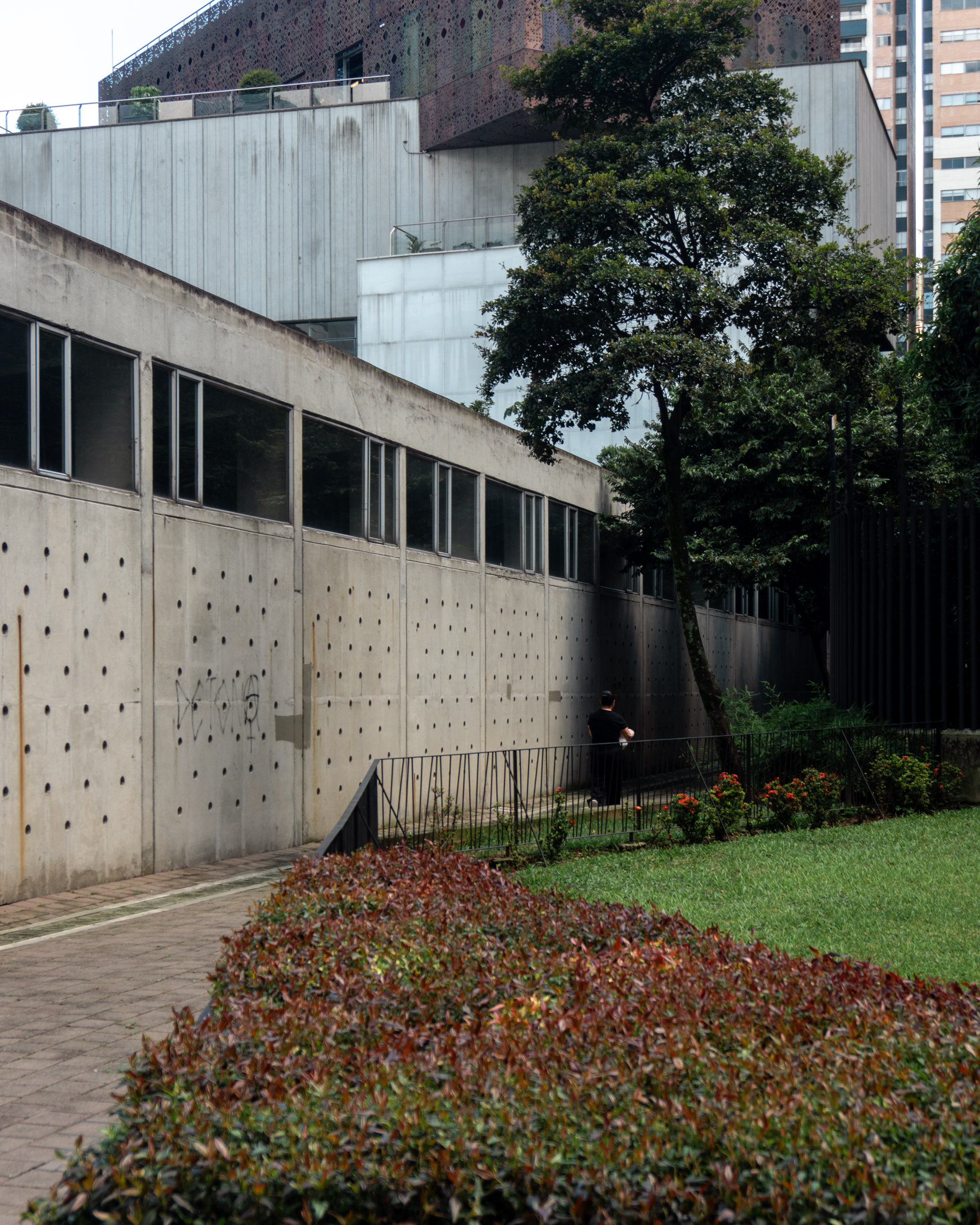 Del Parque del Poblado, camino hacia Ciudad del Río, queriendo reintroducirme a una obra más de Arenas. Cuando llego al parquesito a un costado del Museo de Arte Moderno de Medellín (MAMM), donde deberían estar “Los Amantes I y II”, solo encuentro arbustos en su lugar. ¿Si era aquí? Recuerdo haber pasado por aquí antes, viendo la escultura sin prestarle más atención. Al observar más de cerca, veo un par de bloques de cemento entre los arbustos, posiblemente los antiguos cimientos de las esculturas.