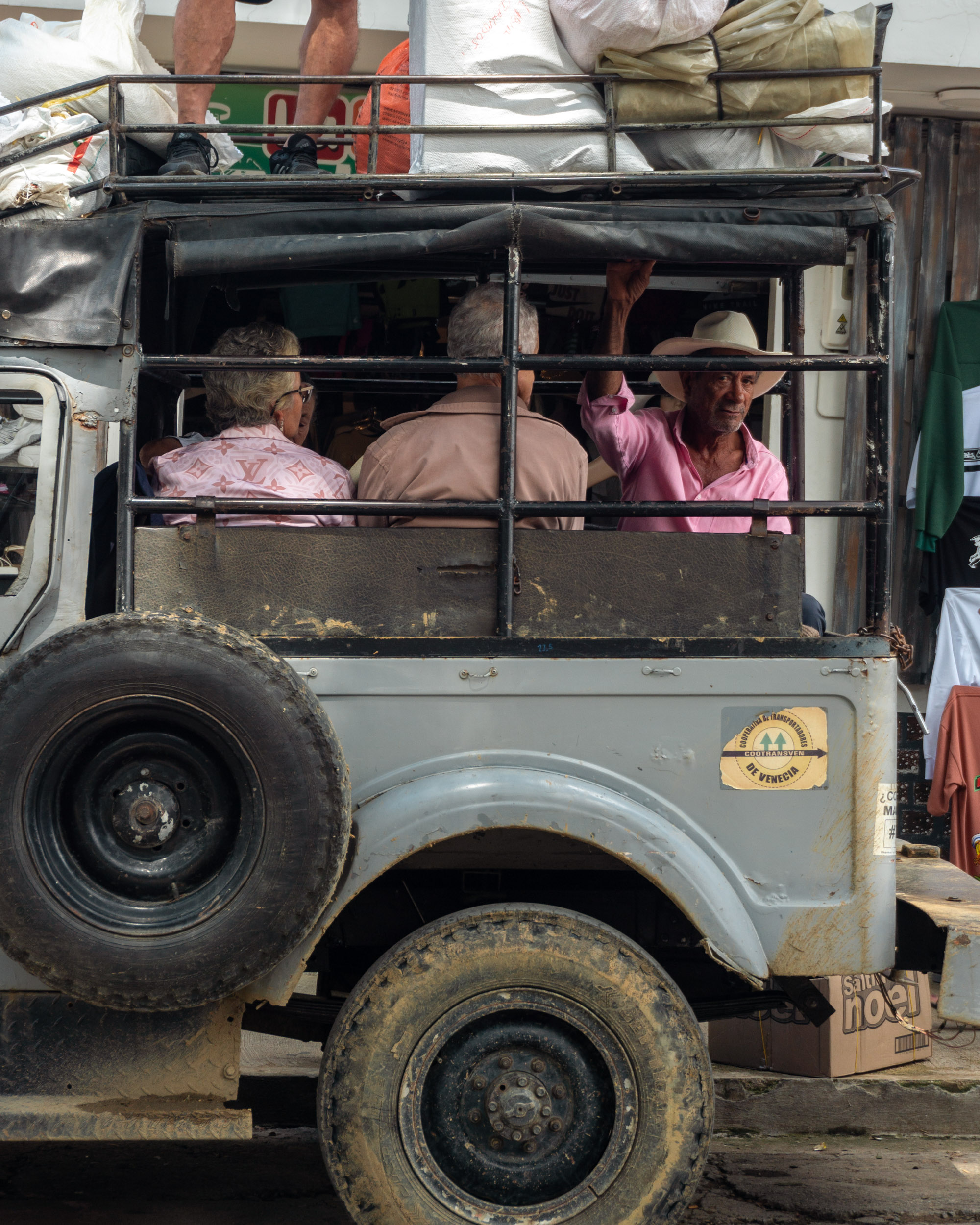 En esta esquina, además de concurridas cafeterías, hay camionetas viejas de transporte público. Jeeps y Toyotas que se han mantenido a través de las décadas. También hay campesinos vendiendo sus productos en la calle: yucas, bananos y plátanos. Hay café en la acera, terminándose de secar.