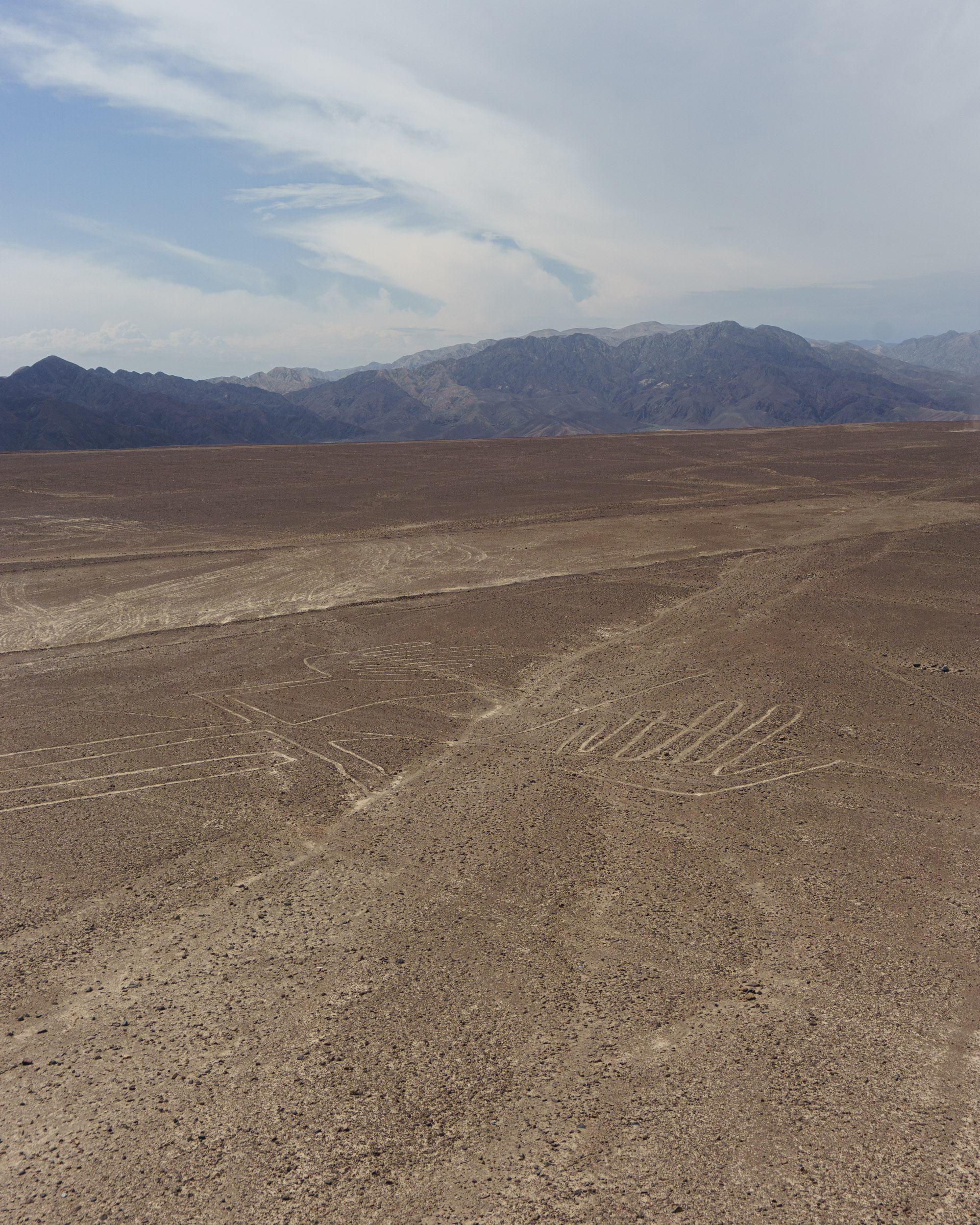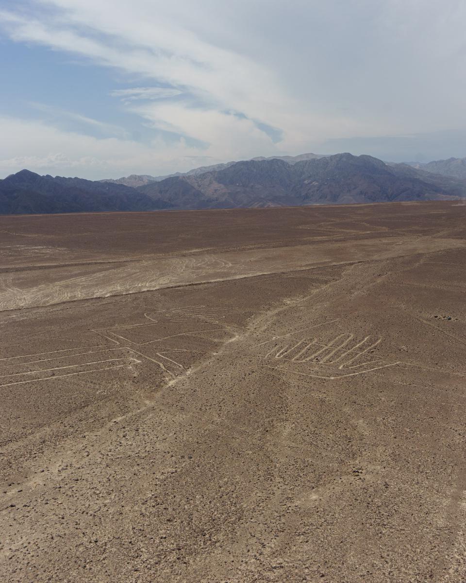 Estado de la vía: Desierto, y más desierto. Hoy, dos novedades: mucho más tráfico de lo habitual y también, ¡las Líneas de Nazca! En la ruta, había un mirador para observar algunas figuras: una lagartija (cortada desafortunadamente por la carretera), un árbol y unas “manos”, aunque estas últimas parecían más una rana sin patas delanteras.