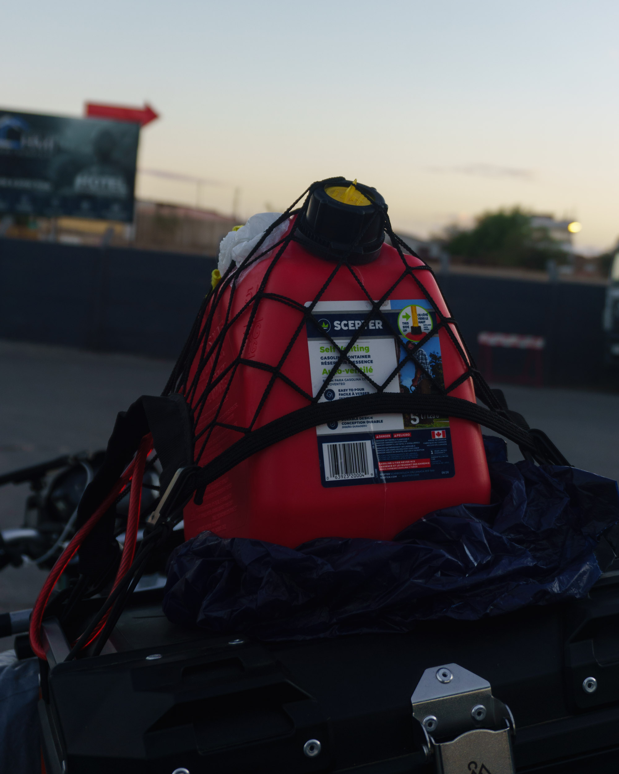 El día comenzó temprano. A las 6 a. m. ya me estaba alistando para salir. Solo había un inconveniente: como al cambiar de país se había adelantado el horario dos horas, ahora el amanecer era mucho más tarde, alrededor de las 7:45 a. m. No queriendo salir en la oscuridad, aproveché para desayunar y revisar mi equipamiento. Preparé el bidón de gasolina extra para no arriesgarme, como ayer. Hoy la distancia entre estaciones de gasolina era aún mayor: 315 kilómetros.