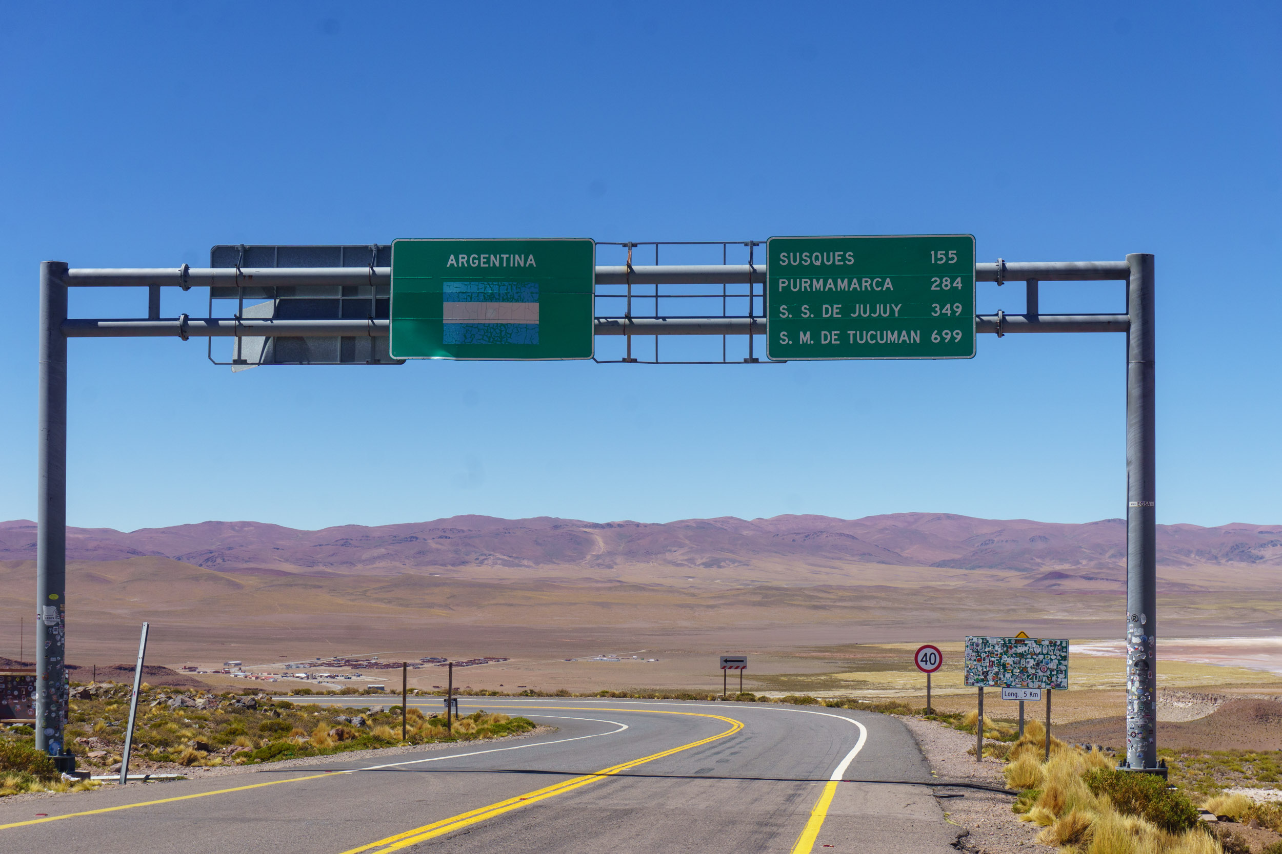 En el control de Jama, me sentí inmediatamente bienvenido a Argentina. Ya había visitado el país tres veces en el pasado y estaba feliz de volver. El proceso de cruzar la frontera fue tan sencillo como pasar por cuatro ventanillas, una al lado de la otra. Nada de comprar formularios en cafeterías ni desmontar todo el equipaje de la moto (aaay Chile…). Luego de 15 minutos, ya estaba en Argentina con todos mis papeles en orden.