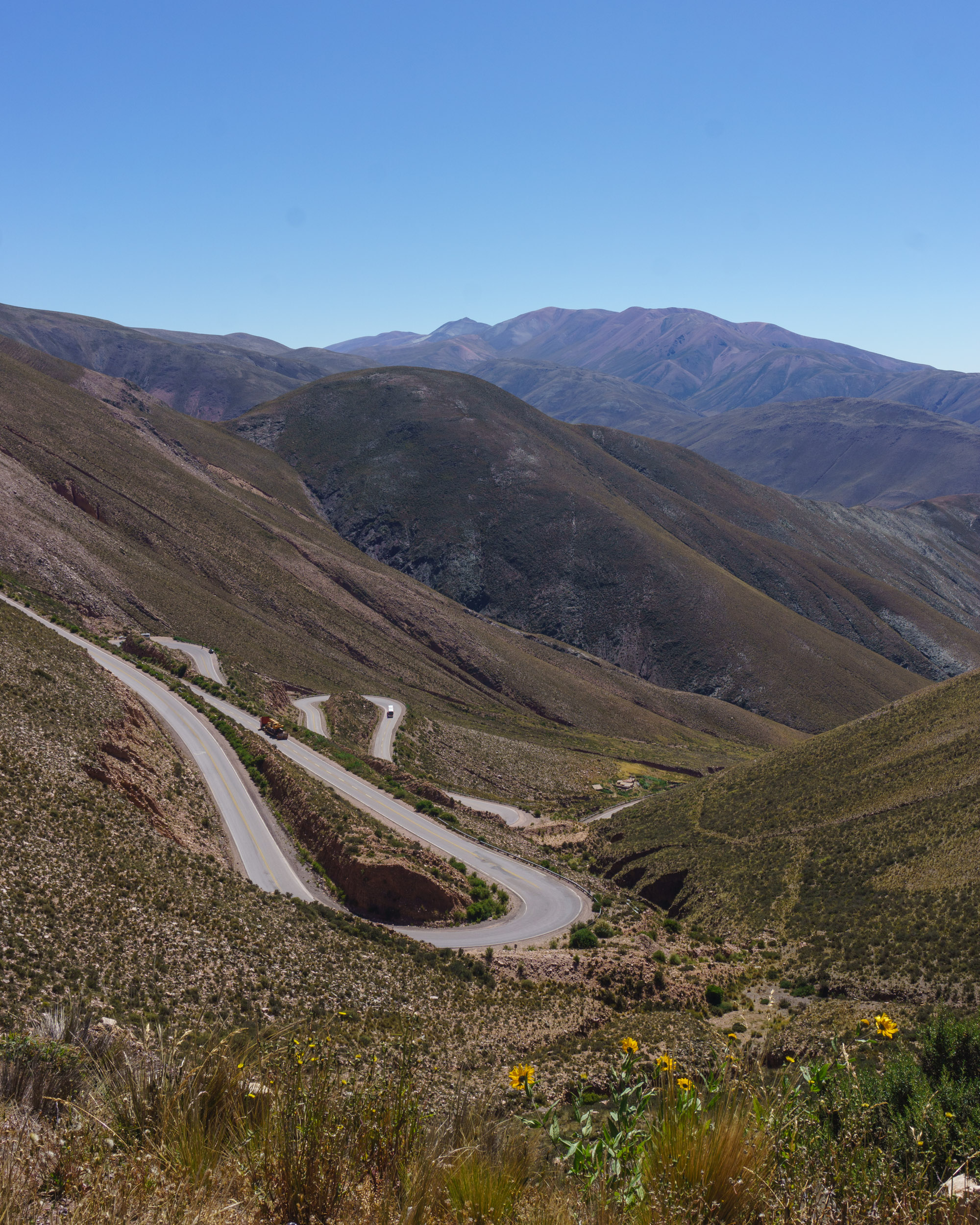 La mayor parte del descenso la hice en la Cuesta de Lipán, una vía con numerosas curvas en U que descienden desde los 4180 metros de altura hasta los 2080 en menos de 60 kilómetros.