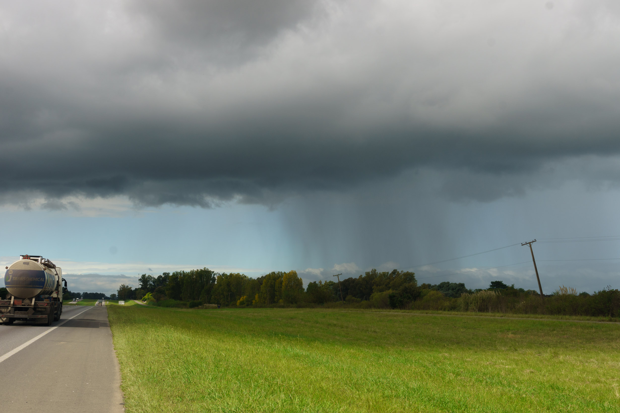 El cielo trató de despejarse hasta que llegué a las afueras de Buenos Aires. De pronto apareció una nube oscura en el horizonte, avanzando a través del cielo con una estela de lluvia. Iba en dirección a la carretera y quería esquivarla a toda costa. Aceleré lo más que pude para pasarla antes de que me interceptara. A la distancia, se veía cómo la lluvia alcanzaba la carretera. No podría esquivarla, ya no me daría el tiempo. Paré a un lado de la carretera para ponerme el impermeable, aún mojado de ayer. Cuando volteé a ver de nuevo la nube, ya había cruzado la carretera y el cielo volvía a estar despejado.